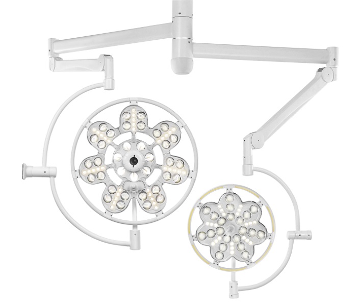 - Сложность выполняемых операций: для простых манипуляций достаточно однокупольного светильника с пятью источниками света с уровнем освещённости до 70 кЛк, для сложных полостных и сосудистых – необходимы многокупольные приборы с большим количеством источников света и функцией регулировки освещения.