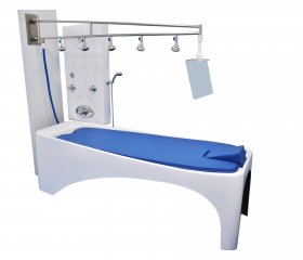 В оборудовании предусмотрено два режима работы: дождевой душ и локальное воздействие на конкретную область тела пациента площадью 15-20 см. Данная модель является улучшенным вариантом базовой версии оборудования. Эргономичный способ крепления панели управления к стене обеспечивает удобство эксплуатации и позволяет экономить пространство. Регулировка давления и температуры воды осуществляется при помощи размещённых на панели управления крана и термостатического смесителя. Оборудование оснащено гигиеническим душем для ухода за кушеткой.