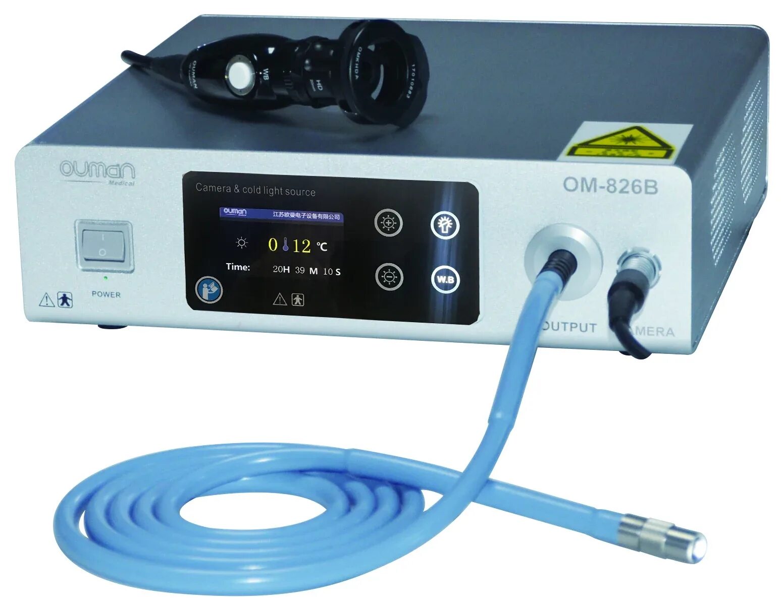 Предусмотрена возможность размещения прибора на эндоскопической стойке, на столе или на полу.