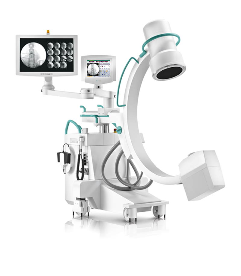 Рентгеновская трубка генерирует излучение, коллиматор придаёт ему необходимый объём и форму (в зависимости от особенностей исследования). Плоскопанельные детекторы преобразуют рентгеновский поток в видимое излучение. Фотодиоды из аморфного кремния реагируют на свет и транслируют контрастное изображение на экран. Экспозиция запускается непосредственно от электросети или через аккумуляторы.