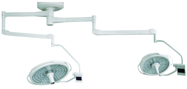 МЕТ 700/500 – бестеневой медицинский светильник, оснащённый современными светодиодами высокой эффективности с различной цветовой температурой. Конструктивно состоит из двух осветительных голов на подвижных консолях, установленных на подвес. Общий уровень освещённости в совокупности составляет 300 кЛк – этого достаточно для проведения операций любой сложности.