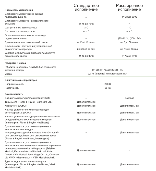 2) Расширенное исполнение с подогревом дыхательного контура, возможностью установки температуры и влажности на дисплее и автоматическим контролем параметров на пациенте