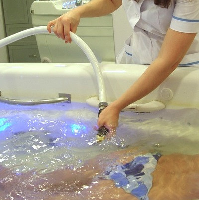 Важно еще и то, что достаточная глубина ванны и ее конструкция позволяет погрузить пациента полностью в теплую воду, не опасаясь, что зона грудной клетки или шейного отдела останутся открытыми и могут остыть в процессе проведения процедуры.