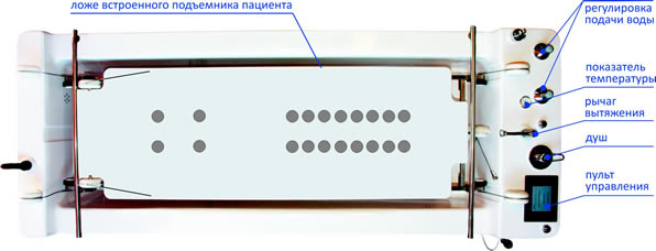 Комплектация ванны предусматривает все необходимое для вытяжения и проведения других бальнеологических процедур (ПДМ, гидромассаж).
