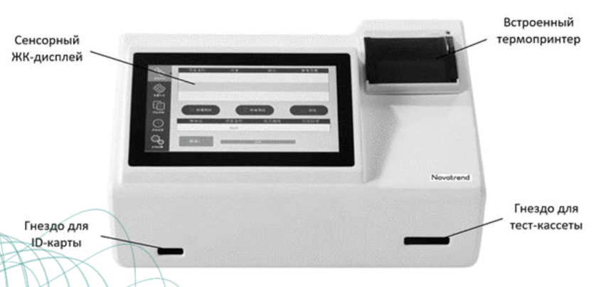 Анализатор иммунофлуоресцентный NovatrendTM — предназначен для получения результатов количественного или качественного анализа путем исследования человеческих образцов с помощью специальных тест-кассет (реагентов) для определения специфических аналитов.