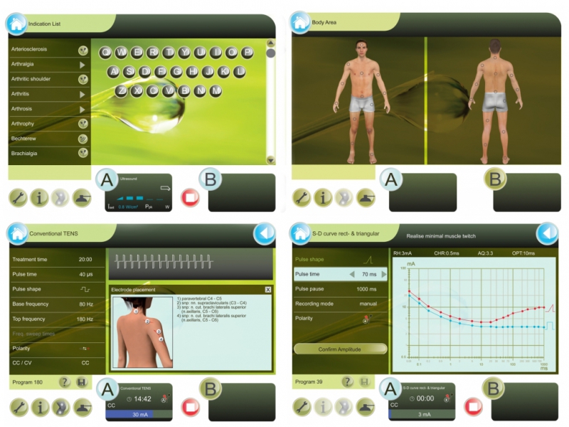 Два независимых канала позволяют подавать на пациента одновременно две различных формы тока, а также сочетать электротерапию, ультразвуковую терапию и лазерную терапию в любых комбинациях