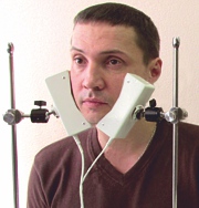 Расположение призм парного призматического излучателя при лечении нарушений мозгового кровообращения (субокципитальная методика).