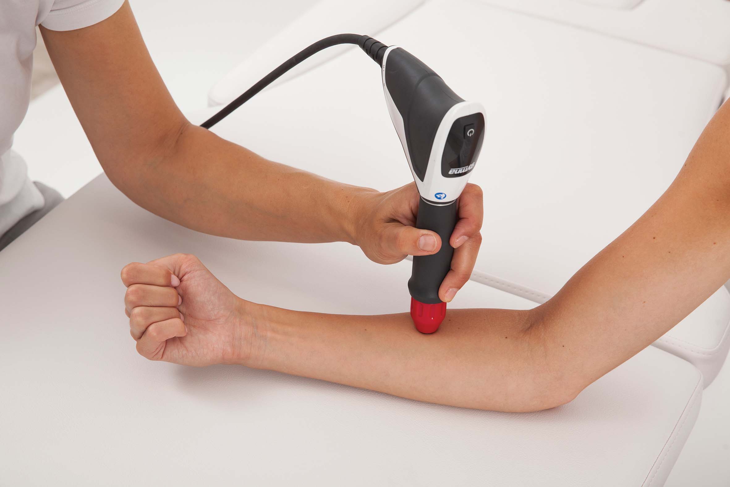 Аппарат ударно-волновой терапии быстро купирует боль без анальгетиков и может использоваться на хронической стадии заболевания и при первичных проявлениях