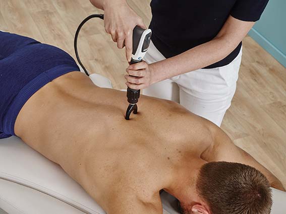В зону лечения подаются акустические ударно-волновые импульсы (УВИ) с частотой 1-23 Гц. Наибольший терапевтический эффект от воздействия УВИ происходит в более плотных тканях и на границе раздела тканей: кость-сухожилие, мышца-фасция и т.д. Под влиянием ударной волны отмечается локальное усиление кровотока, изменение проницаемости клеточных мембран, активизация обмена веществ и восстанавление клеточного ионного обмена. Тем самым обеспечивается интенсивное выведение конечных продуктов катаболизма, стимуляция восстановительных процессов тканей, противовоспалительный и противоотёчный эффект. Воздействие УВИ на область патологического очага разрывает порочный круг болевых импульсов, следствием чего является быстрое снижение и купирование болевого синдрома.