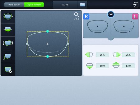 Экономьте время с эффективным цифровым сканированием и возможностью распознавания отверстий на HAB-8000! Простое редактирование отверстий для безободковых/полуободковых оправ используя большой и чувствительный сенсорный экран с интуитивно понятным меню графического интерфейса!