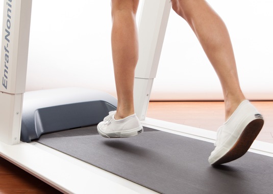 Дорожка EN-Motion фирмы Enraf Nonius оснащена системой контроля местоположения пациента при движении по полотну. Если происходит отклонение от заданной программы и пациент отстает или начинает опережать движение полотна – инфракрасный датчик, постоянно следящий за положением пациента, подает сигнал на компьютерный блок и сам рассчитывает замедлить или ускорить полотно, чтобы пациент вернулся на исходное безопасное положение в середине дорожки. В случае если пациент приближается к краю дорожки и положение становиться опасным для него – дорожка автоматически останавливается и продолжает движение в том случае, если в течение 30 секунд пациент займет безопасное положение в середине полотна. Плавный ход полотна дорожки даже на маленьких скоростях делает комфортным и безопасным занятия любой интенсивности.