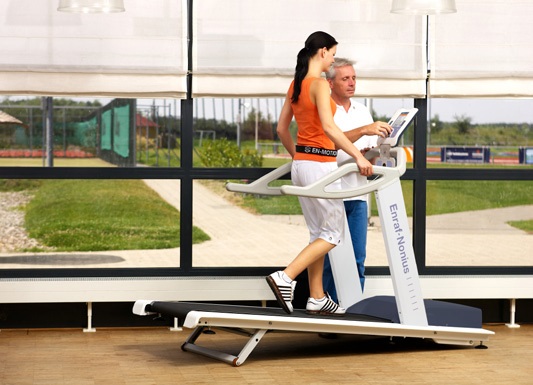 Медицинская беговая дорожка EN-Motion это отличный выбор для отделений реабилитации и восстановления как в комплексе с другими тренажерами производителя, так и в составе любых других комплексов. Благодаря таким отличительным чертам как грузоподъемность (235 кг), дополнительная платформа и дополнительные поручни в начале полотна упражнения на дорожке EN-Motion доступны и комфортны для любых пациентов на любой стадии восстановления. Высокая точность настройки скорости движения полотна (от 0,4 км/ч, с шагом 0,1 км/ч) позволит выбрать доступную и оптимальную скорость как для пациентов, только приступающих к процессу реабилитации, так и для пациентов, которым требуется более высокая нагрузка (максимальная скорость до 18 км/ч).