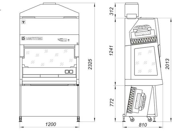 Основные параметры и размеры бокса биологической безопасности класс II ( тип B2)