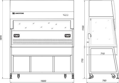 Габаритные размеры ламинарного бокса БАВнп-01-"Ламинар-С"-1,8 (код 412.180):