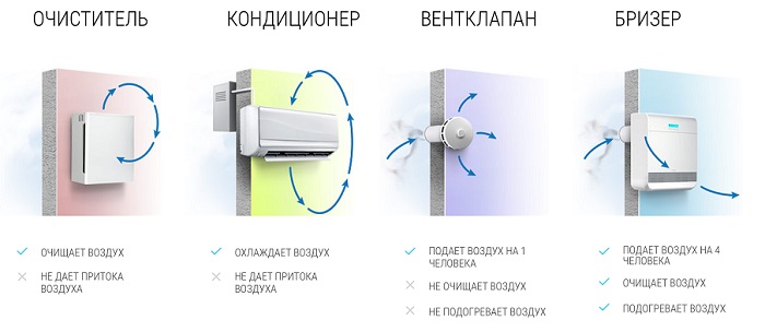 Бризер непрерывно подает свежий воздух с улицы при закрытых окнах.