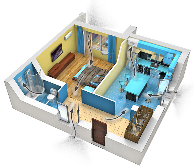 Приточный воздух подогревается и защищает зимой от сквозняков.