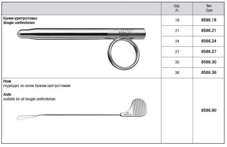 Необходим для рассечения стриктур у женщин и меатотомии у мужчин