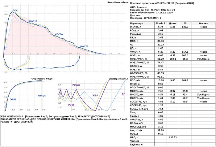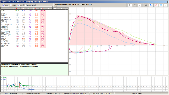 Соответствует отечественным и мировым (ATS/ERS 2005) стандартам спирометрии по точности и интерпретации