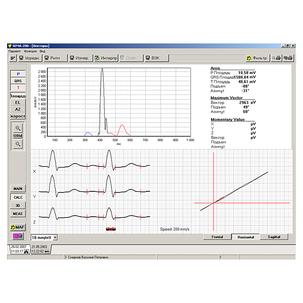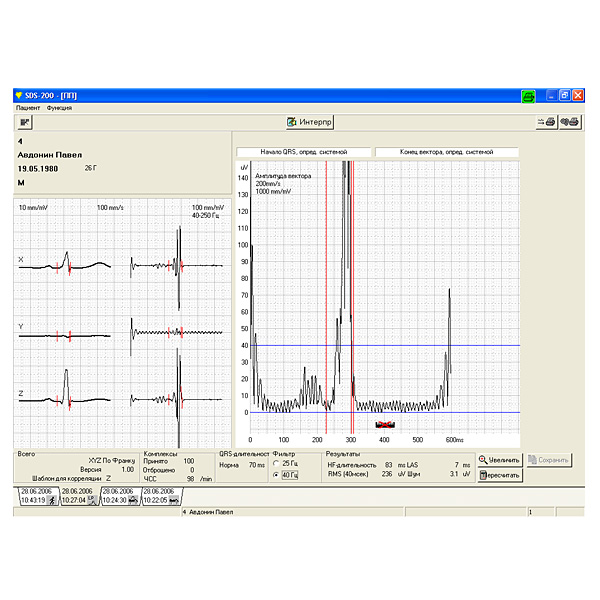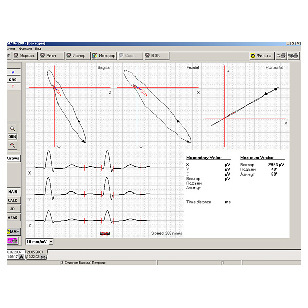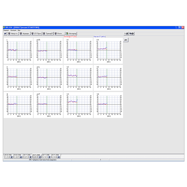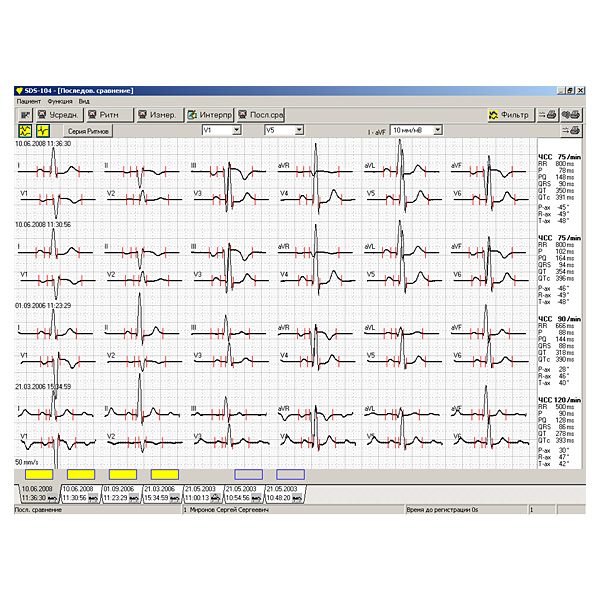 В программе ППЖ SCHILLER возможно проведение измерений в различных конфигурациях отведений. Анализ проводится в течение заранее определенного отрезка времени.