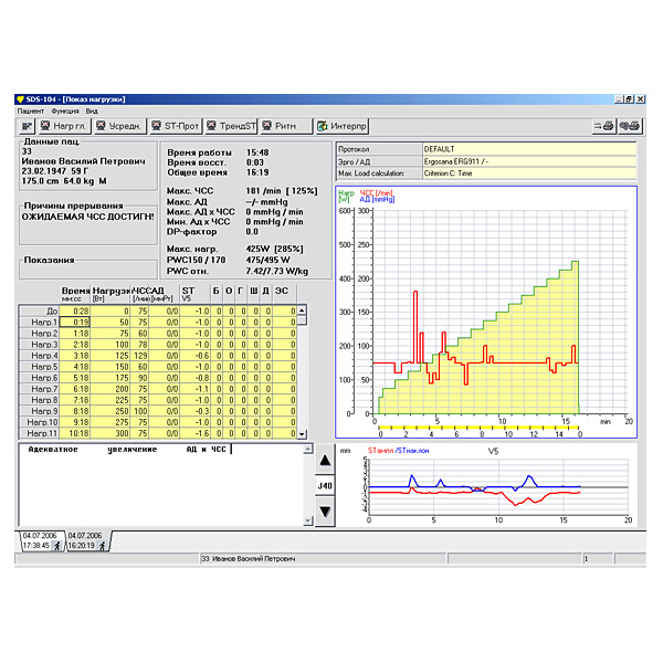 • Программа нагрузочного тестирования (12 канальная ЭКГ нагрузки с полным обнаружением и возможностью мониторинга ST и ритма, сохранение всего теста)