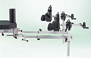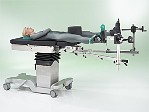 Оперативное лечение всех видов переломов нижних конечностей. Быстрое, простое и прочное присоединение конструкции к операционному столу Schmitz.
