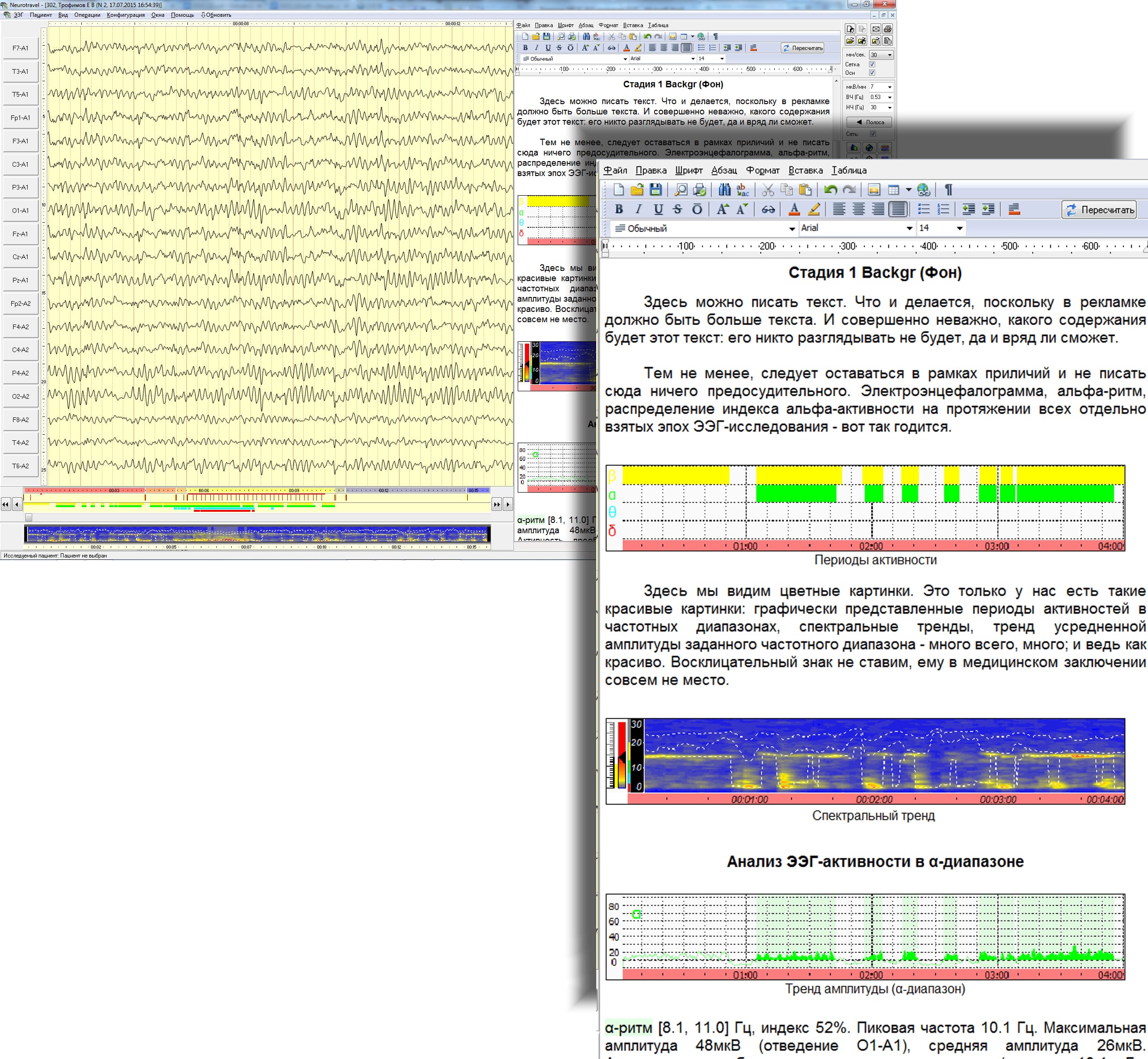 Встроенный редактор и автоматическое описание ЭЭГ - мощные инструменты для облегчения и ускорения написания врачебного заключения.