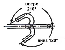 - Изгиб дистального конца, вверх-вниз: 210 - 120 град.