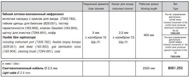 Гибкий оптико-волоконный нефроскоп 5 мм / 15 Шр. канал 2,5 мм / 7,5 Шр