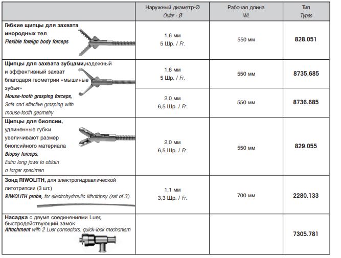 Вспомогательные инструменты к гибкому оптико-волоконному нефроскопу