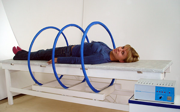 Импульсная трехфазная магнитотерапевтическая установка бегущим магнитным полем, которая создает импульсы затухающего переменного магнитного поля с вариациями индукции 3,5 мТл. Комплектуется специализированной кушеткой для пациентов.