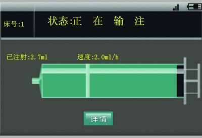 - монитор отображает в реальном времени состояние инфузии шприцевых и инфузионных насосов, которое включает в себя: размер шприца, скорость потока, вводимый объем, номер кровати, заданный объем и сигнал тревоги;