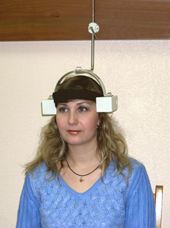 Конструктивно “ОГОЛОВЬЕ” выполнено в виде шлема, содержащего сдвоенный излучатель бегущего магнитного поля. Каждая из двух частей облегает боковые доли черепа, позволяя перемещать магнитное поле одновременно и синхронно с обоих его сторон. При этом скорость движения поля вдоль зрительного тракта может регулироваться от 0,9 до 9 м/с, что соответствует перемещению активного участка изменения мембрального потенциала по нервном волокну (Хюбел Д., 1990 г.). Максимально измеренная глубина проникновения поля в структуры мозга - 90 мм.