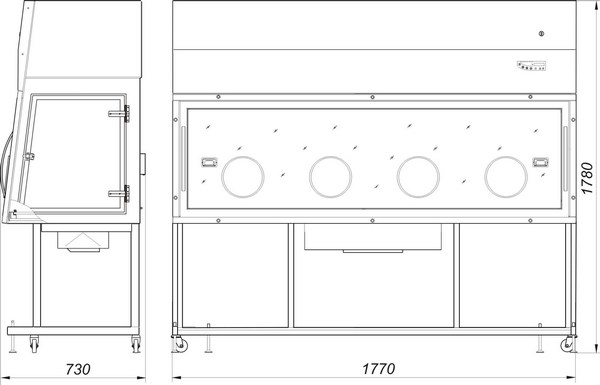 Основные параметры и размеры изолятора на 4 перчаточных портатвляется через рабочую камеру.