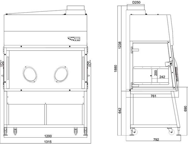 - очистка воздуха, поступающего в рабочую камеру двухступенчатая: происходит через предварительный фильтр грубой очистки G4 и приточный НЕРА-фильтр Н14, расположенный над рабочей камерой.