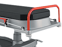 - • Боковык поручни с серым /красным вжареным порошковым покрытием опускаются ниже поверхности лежака, 4 колесика, предохраняющих от соприкосновения со стеной.