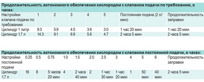 Портативный баллон может оснащаться редуктором постоянной подачи кислорода с потоком 1-6 литров в минуту либо 1-16 литров в минуту. Также на баллон может устанавливаться редуктор с экономайзером, в этом случае кислород подается из баллона только на вдохе (пульс-дозовая подача) и длительность работы одного баллона увеличивается во много раз, составляя до 15 часов и выше.