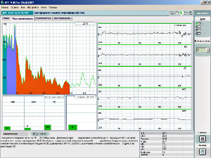 После компьютерной обработки врачу предлагается ФКГ-сигнал, разложенный на частоты по Маасу-Веберу. При анализе врач может изменить масштаб просмотра, исключить артефакты, выделить фрагмент.