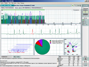 Специализированный модуль программы позволяет проводить анализ нарушений ритма за все время исследования: