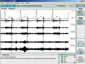 После регистрации фрагмента ЭКГ в память компьютера программа предлагает длительную (40 с) запись II отведения для анализа ритма.