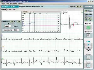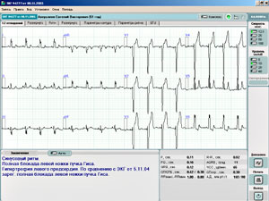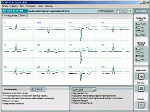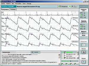 Врач имеет возможность проанализировать все графики и таблицы, просмотреть записанные фрагменты ЭКГ, и, при необходимости, отредактировать компьютерное заключение, сохранив его в памяти компьютера.
