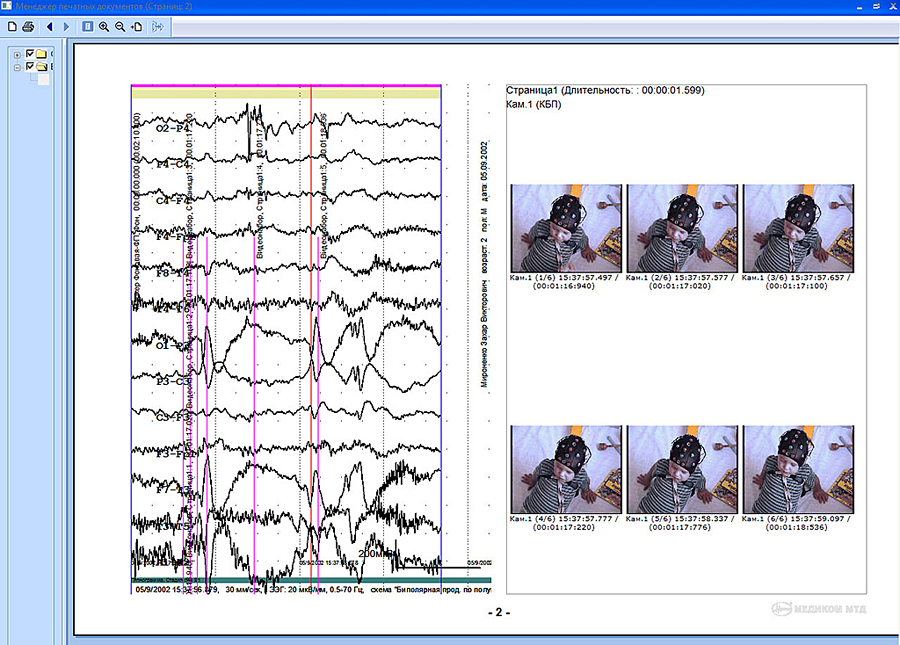 Важной особенностью ПМО «Энцефалан-Видео» является возможность представления результатов ЭЭГ-видеомониторинга в виде видеоролика в общепринятом формате *.avi.