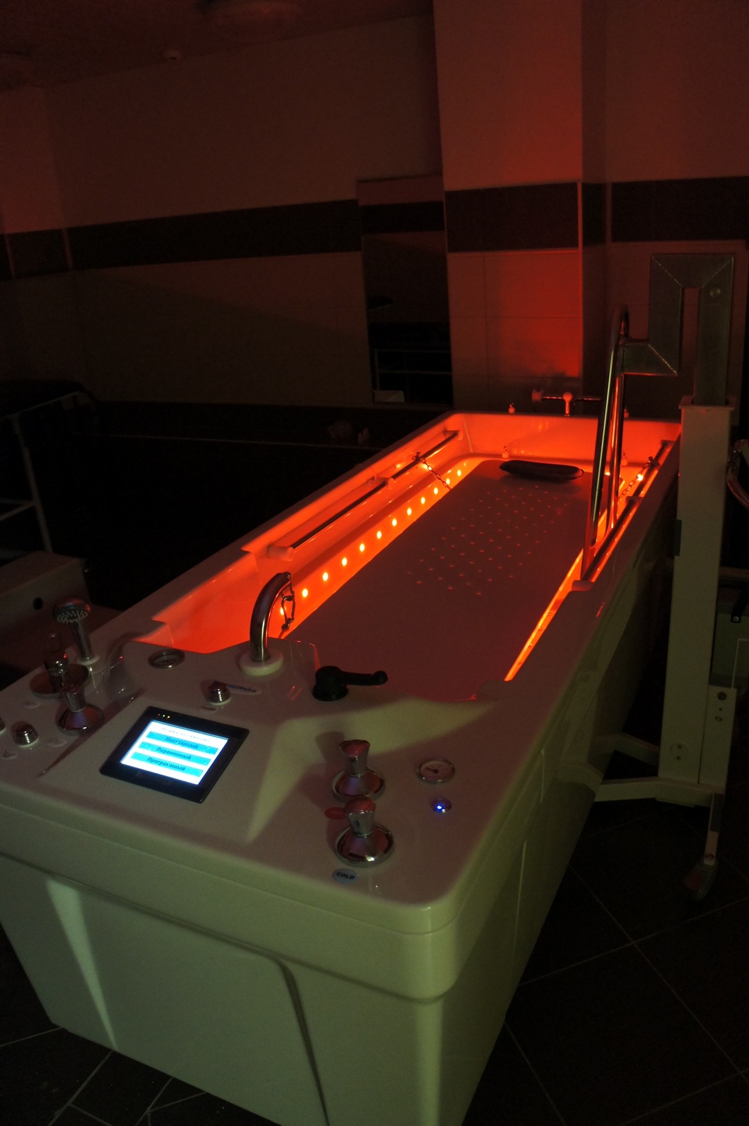 Одна из моделей оснащена системой хромотерапии и светопрозрачной мембраной ложа, которая позволяет распространять цветовую палитру тонов света и тем самым способствует нормализации нервной системы организма пациента. Доказано, что хромотерапия усиливает терапевтическое действие гидромассажа при их сочетанном проведении. Управление опцией хромотерапии осуществляется с помощью сенсорной кнопки, расположенной рядом с основным переключателем.