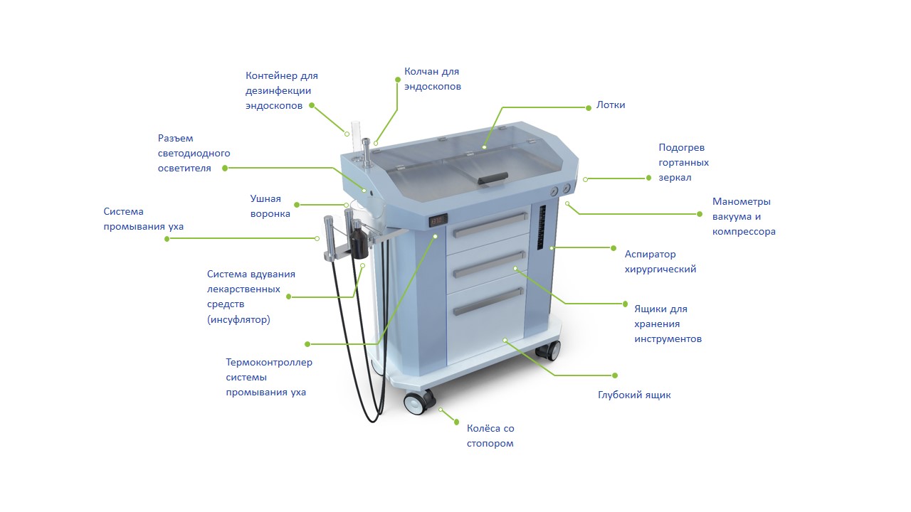 Лор-комбайн ZET Plus – ЛОР-аппаратура. Подключение к стационарной водопроводной системе/ системе автономного водоснабжения. Металлический корпус, окраска порошковым напылением.