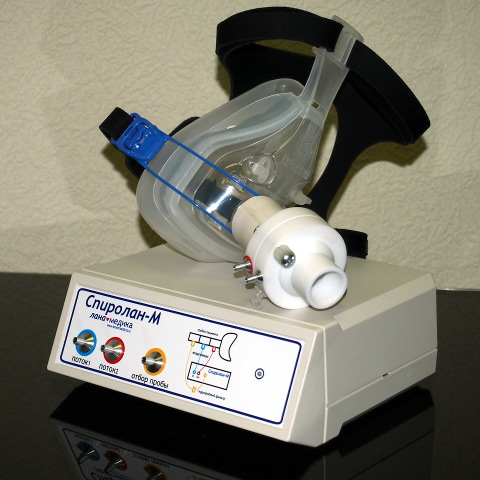 Метаболограф Спиролан-М это компьютерный прибор для проведения непрямой калориметрии. Аппарат выполнен в виде небольшой приставки подключаемой к персональному компьютеру по шине USB. Принцип действия основан на синхронном определении газового состава (концентрации кислорода и углекислого газа) дыхательной смеси и регистрации объемов вдоха и выдоха.