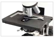 Столик плоский с керамическим покрытием, размер 191х140 мм. С двухкоординатным перемещением, диапазон перемещения 80х52 мм, с коаксиальными рукоятками перемещения с правой стороны и препаратодержателем на 2 стекла |
