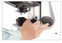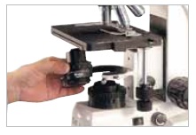 Стандартно (по умолчанию) микроскопы поставляются с механическим столиком с рукояткой управления справа.