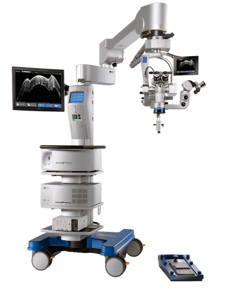 6. Первый в мире микроскоп со встроенным интраоперационным оптическим когерентным томографом iOCT. Он позволяет получать срезы переднего и заднего сегментов глаза в режиме реального времени непосредственно в ходе операции, что значительно улучшает результат хирургического вмешательства. Активно используется при пересадке роговицы, ламеллярной кератопластике, витреоретинальной хирургии, хирургии глаукомы и т.д.