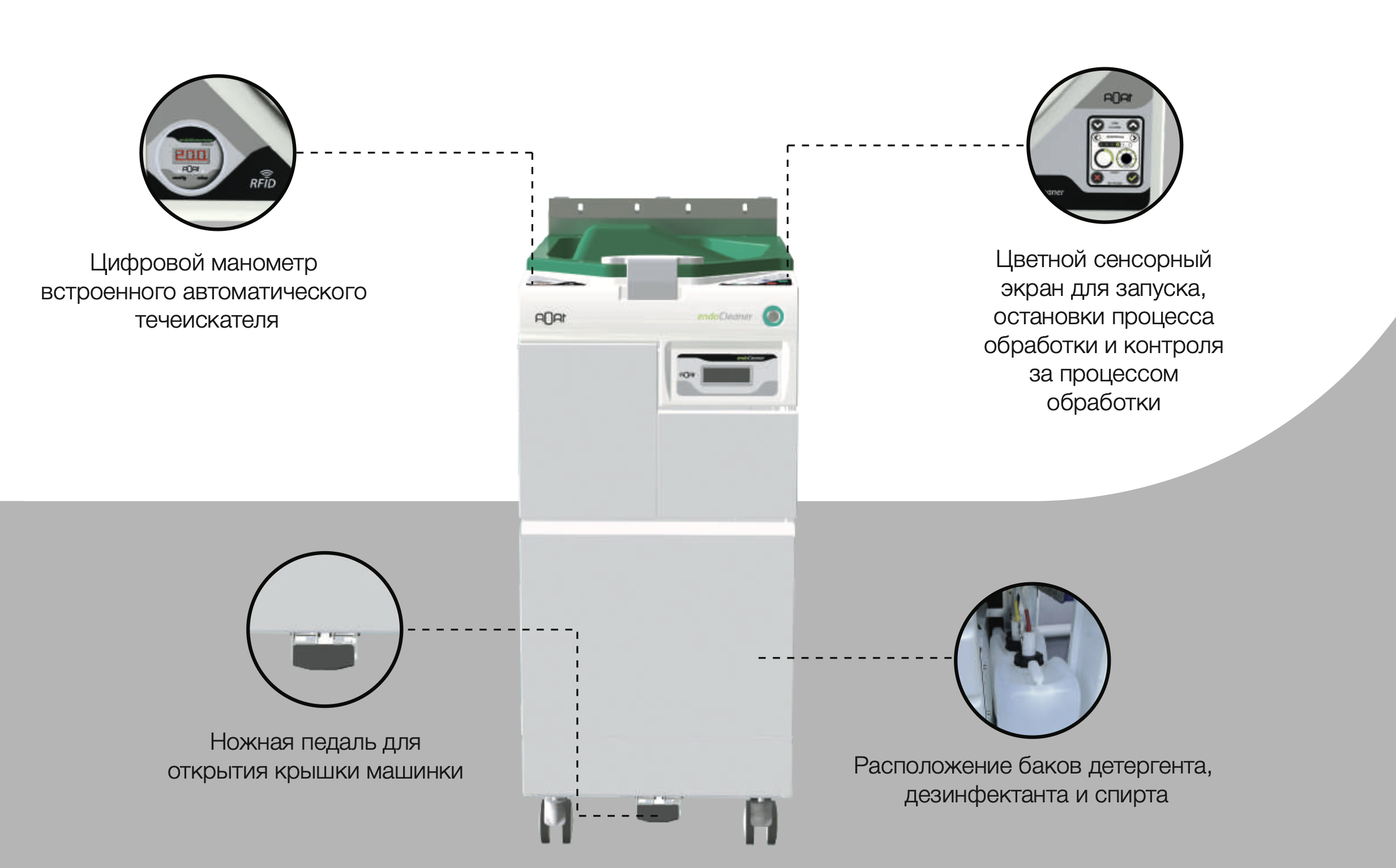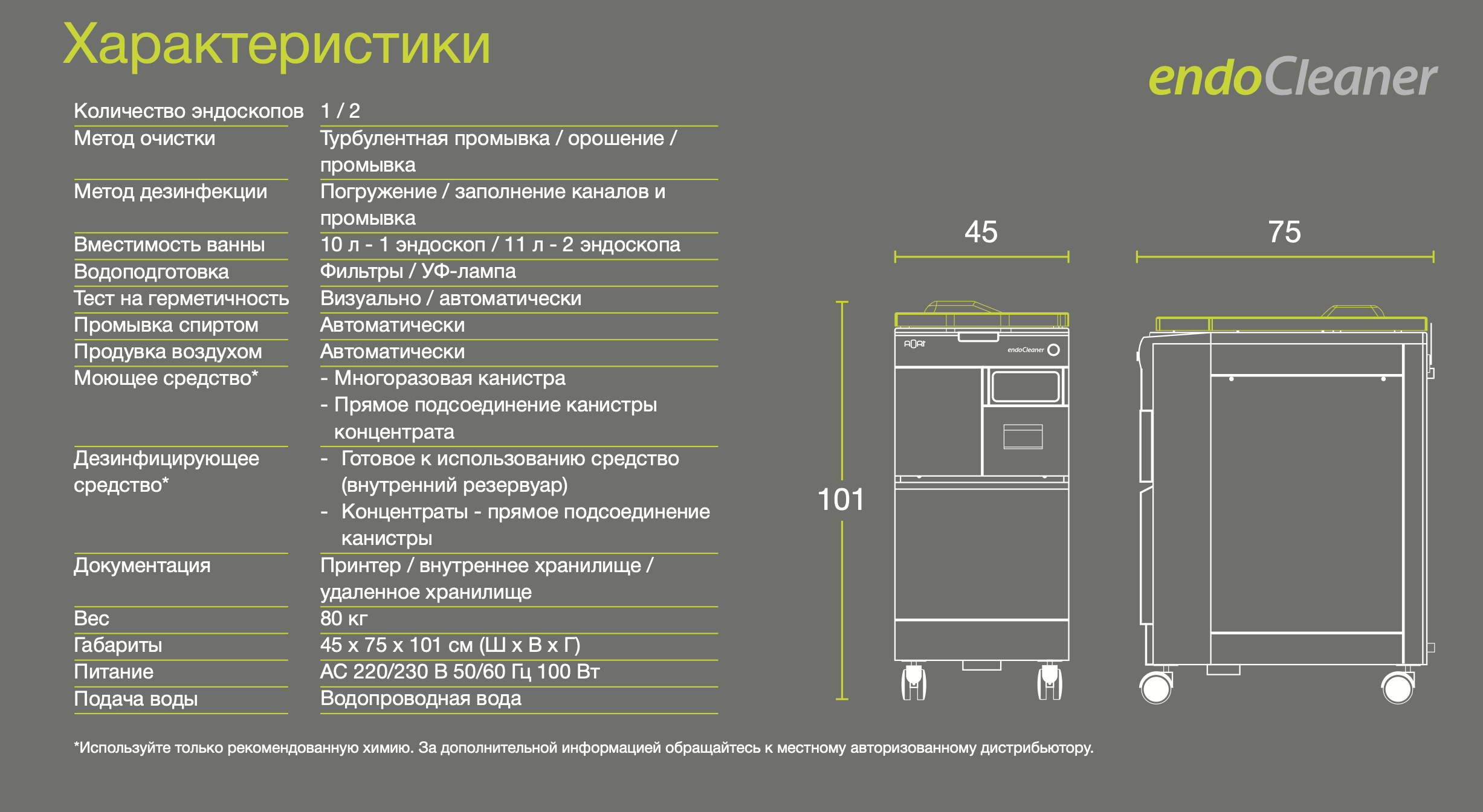 EndoCleaner – это компактный – всего 47 см в ширину, – но ультра-технологичный репроцессор эндоскопов, отвечающий всем требованиям безопасности и удобствам пользования в современном отделении эндоскопии.