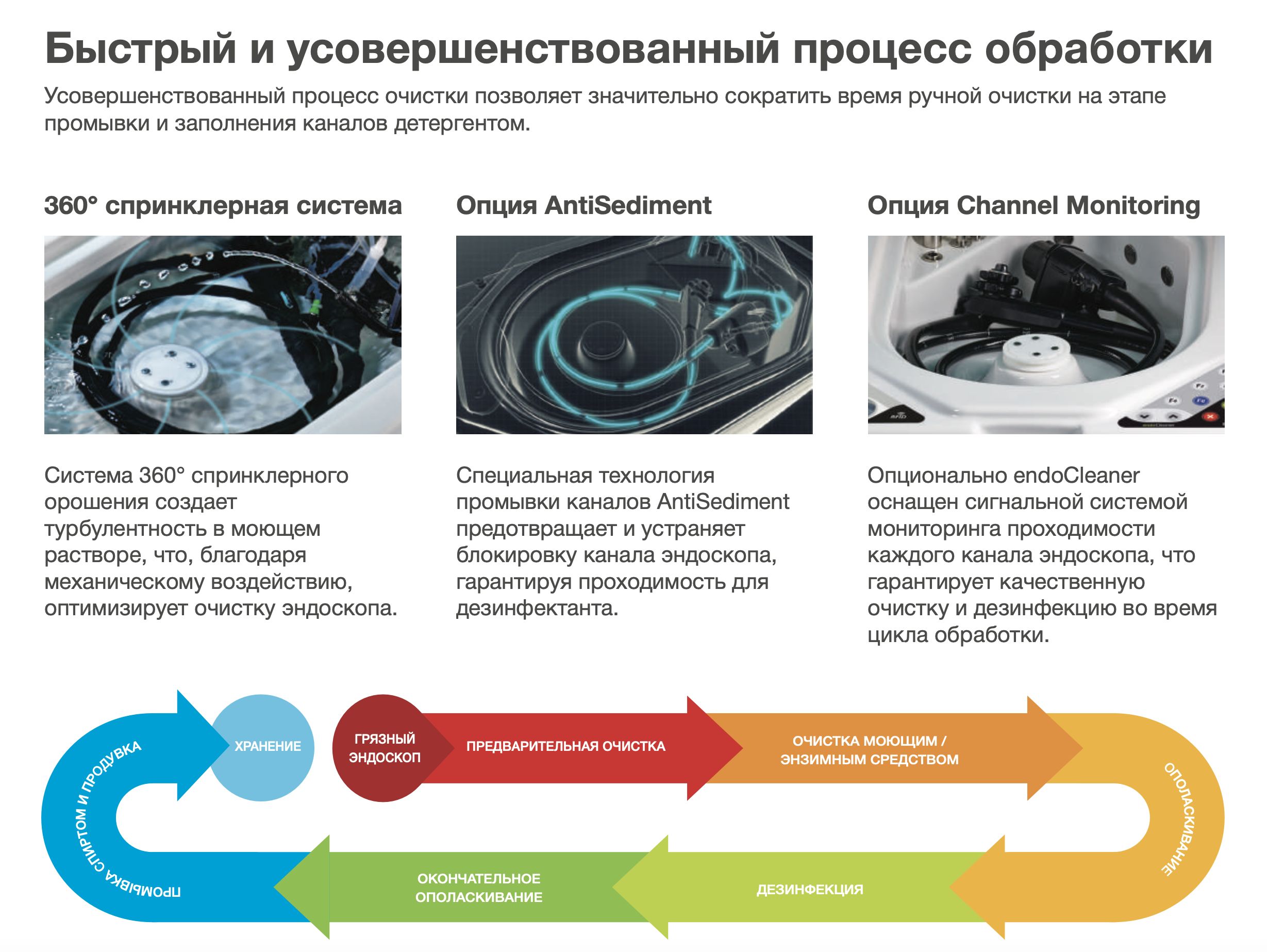 Благодаря особенности конструкции endoCleaner, система Eco2 (экологичность и экономичность) позволяет минимизировать расход воды и дезинфектанта, снижая негативное воздействие на окружающую среду.