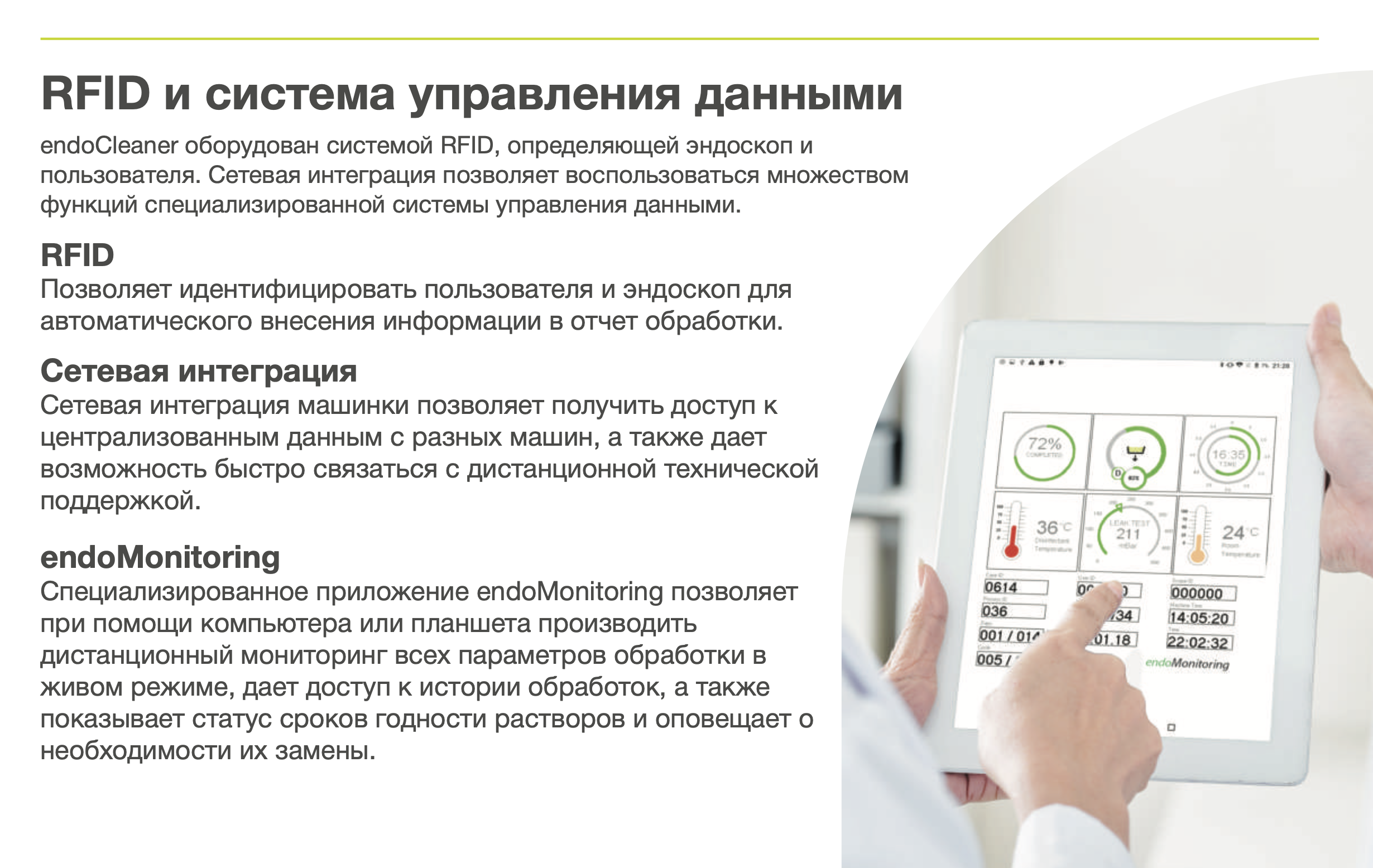 Безопасность является одним из основополагающих принципов конструкции репроцессора. endoCleaner имеет множество опций безопасности для персонала, пациентов, оборудования и окружающей среды.